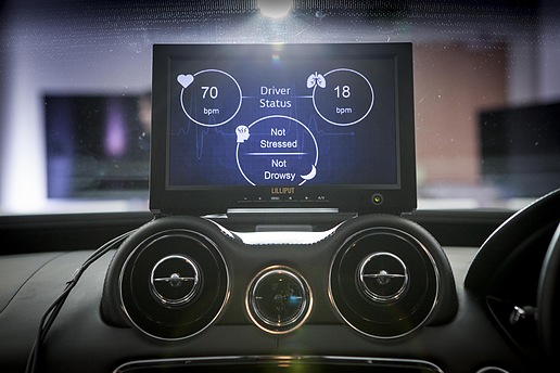 Complementing this research into a driver’s mental state is the monitoring of his or her physical health. JLR is developing a “wellness seat” that can detect stress, or some serious health issues, via heart- and respiration-rate monitoring. For research, heartbeats and breathing rates appear on displays. Again, alerting methods that don’t conflict with other attention-getters need to be refined.