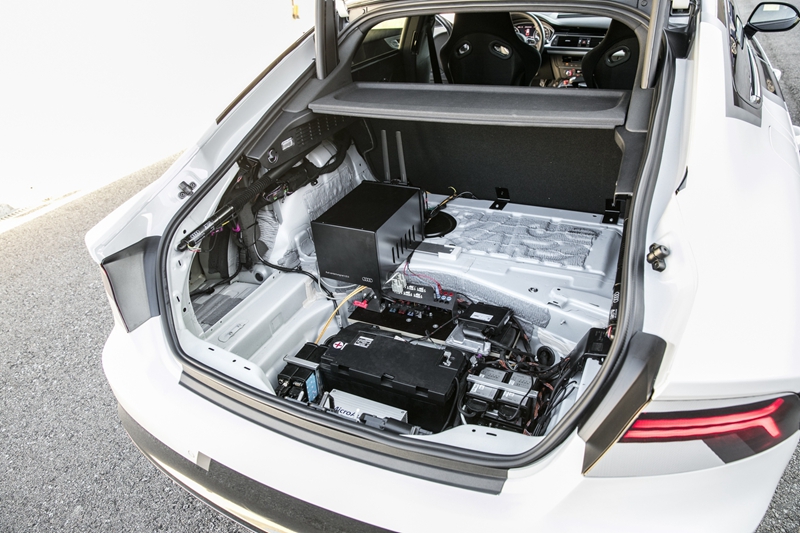 讓一輛以時速210KM飛馳的大馬力奧迪RS7跑車,在無人控制——“脫手脫腳”(手不在方向盤上,腳不在剎車板上)的情況在下坡賽道急轉(zhuǎn)彎處緊急制動,與在車水馬龍的城市中心尋找停車位自助泊車,這兩件事看上去似乎是風(fēng)馬牛不相及。但事實上這兩者之間確有關(guān)聯(lián)。