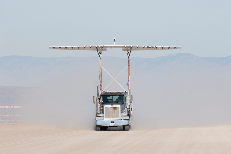 The testbed functions like a wind tunnel on the ground, accelerating to as much as 73 mph to gather data. Researchers have used the testbed to measure lift, drag, pitching moment, and rolling moment that can validate research tools.