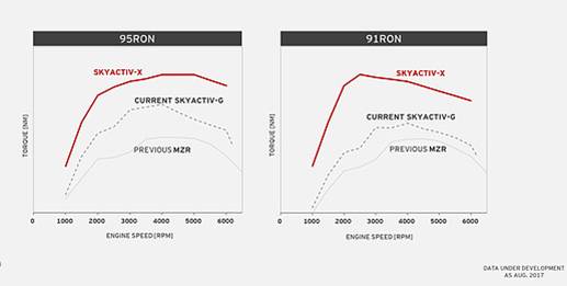 As AE reported previously, during Skyactiv-X’s development through G1, G2, and G3 program stages, engineers targeted an 18:1 compression ratio at lambda 2.5—a 40% improvement in thermal efficiency by setting the ideal pressure and temperature for homogeneous-charge compression ignition.