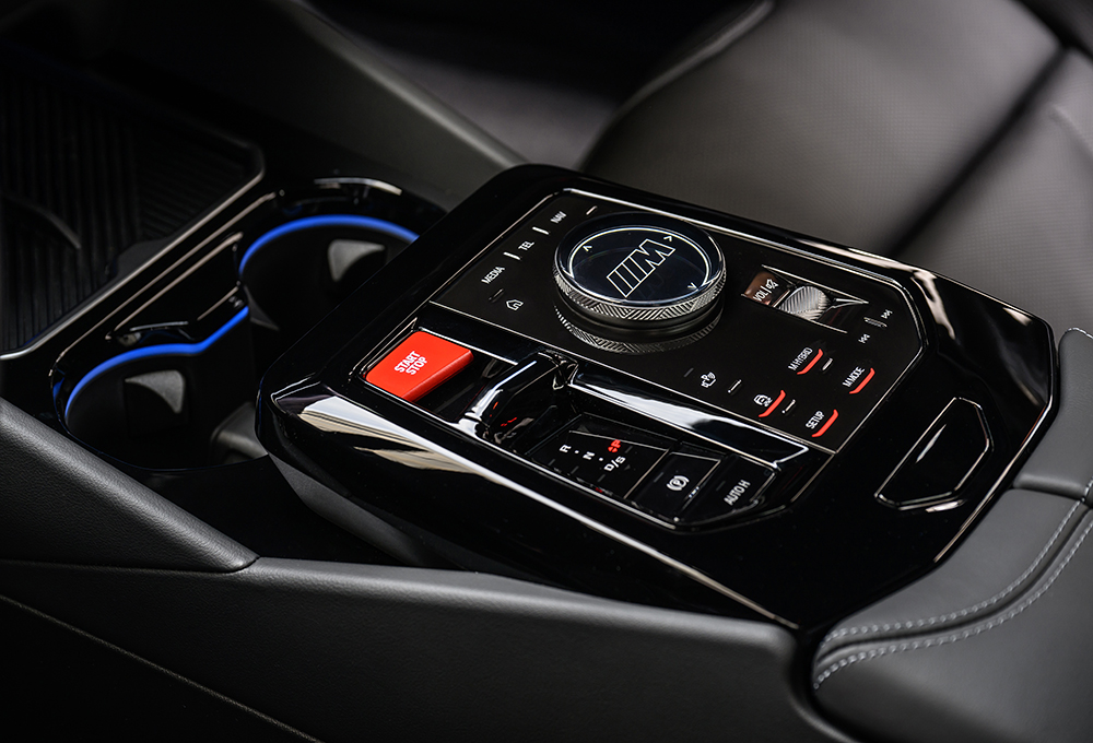 Another M console switch tailors settings for the throttle map, transmission, steering, suspension, AWD, brake pedal and energy recuperation. Two red M buttons on a flat-bottomed steering wheel can cut to the chase with stored macro settings. Or, pull the left-hand shift paddle for one second, and a Boost function cranks every powertrain and chassis setting to maximum sportiness.