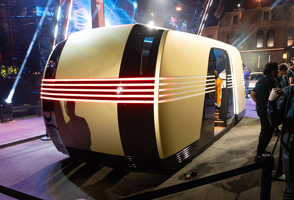 SAE Media had a chance to ride in the Cybercab. Its small stature and gullwing doors did feel in place in the faux-city Tesla put together on the Warner Bros. lot. The interior was roomy for two people, and the seats were comfortable. The lack of a steering wheel or pedals, while not alarming in the operating domain of a movie set with prescribed routes without the hustle and bustle (and dangers) of a real city, could make some of the public pause before riding.