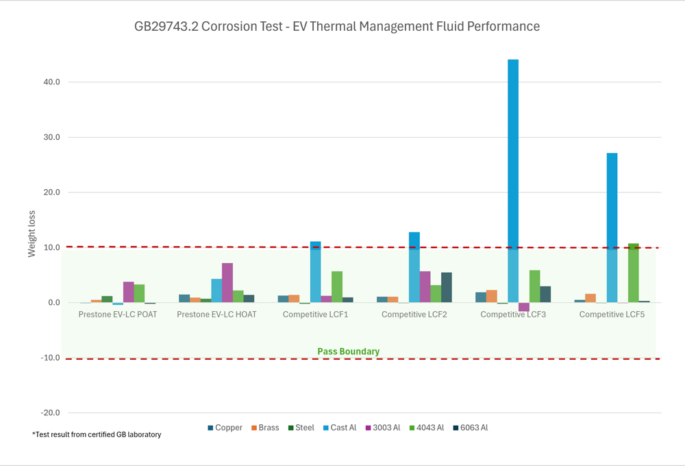 Prestone’s Corrigan said the China GB threshold of 100 μS/cm “is a pretty safe value if there was an accident involving accidental contact of that fluid with the high-voltage electronics. But that’s where the challenge comes in. The conductivity comes from the additives we put in to protect against corrosion. If we pull those out, we can reduce conductivity but now we compromise on corrosion. Our R&D team has done a lot of development work on technologies that allow us to pass the corrosion requirements in that [China] GB specification while maintaining low conductivity. Our fluids are around 75 μS/cm.”