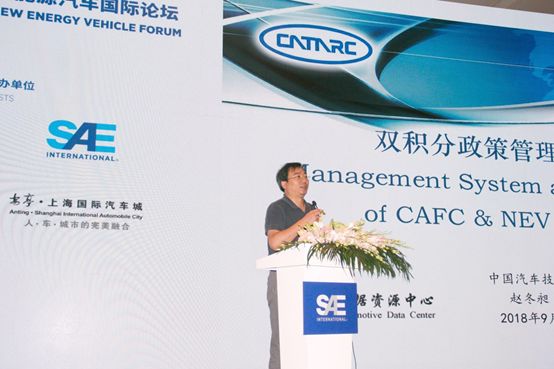 中國汽車技術研究中心 數(shù)據(jù)資源中心 副總工程師 趙東昶博士,以《雙積分政策管理思路與產(chǎn)業(yè)影響》為題,圍繞著油耗與新能源雙積分政策的管理思路和政策導向展開,剖析政策要求下對產(chǎn)業(yè)發(fā)展的影響,進一步探討未來節(jié)能與新能源汽車的發(fā)展趨勢發(fā)表了主旨演講。